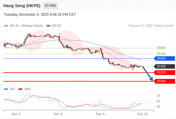 在 25590 之下,看跌,目标价位为 25250 ,然后为 25040 。