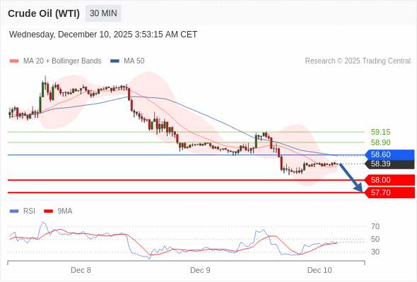 在 58.60 之下,看跌,目标价位为 58.00 ,然后为 57.70 。