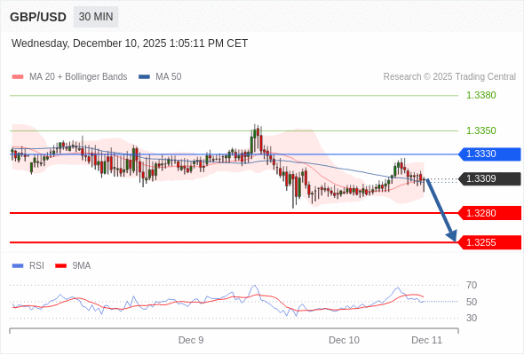 在 1.3330 之下,看跌,目标价位为 1.3280 ,然后为 1.3255 。