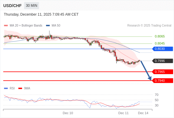 在 0.8030 之下,看跌,目标价位为 0.7965 ,然后为 0.7940 。
