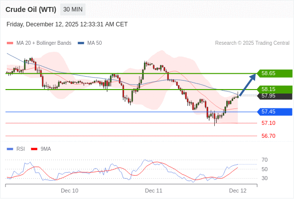 在 57.45 之上,看涨,目标价位为 58.15 ,然后为 58.65 。