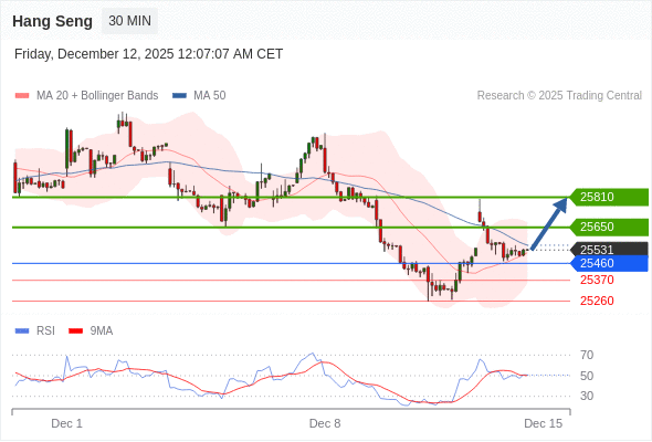 在 25460 之上,看涨,目标价位为 25650 ,然后为 25810 。