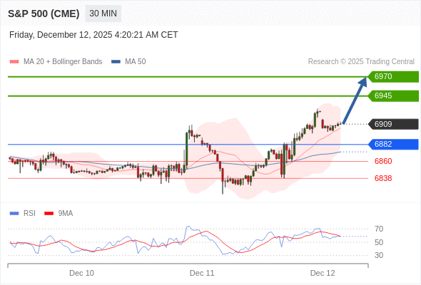 在 6882 之上,看涨,目标价位为 6945 ,然后为 6970 。