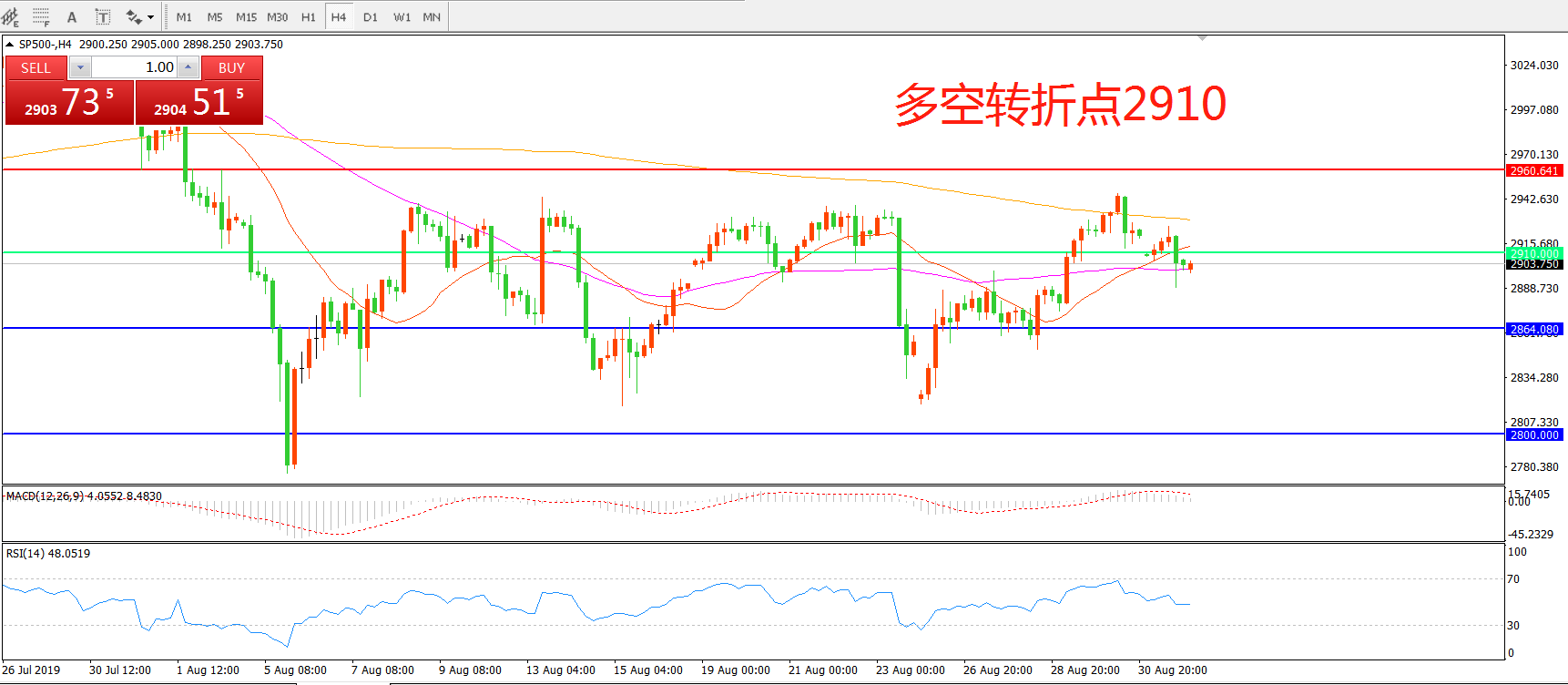 多空转折点:2910.00