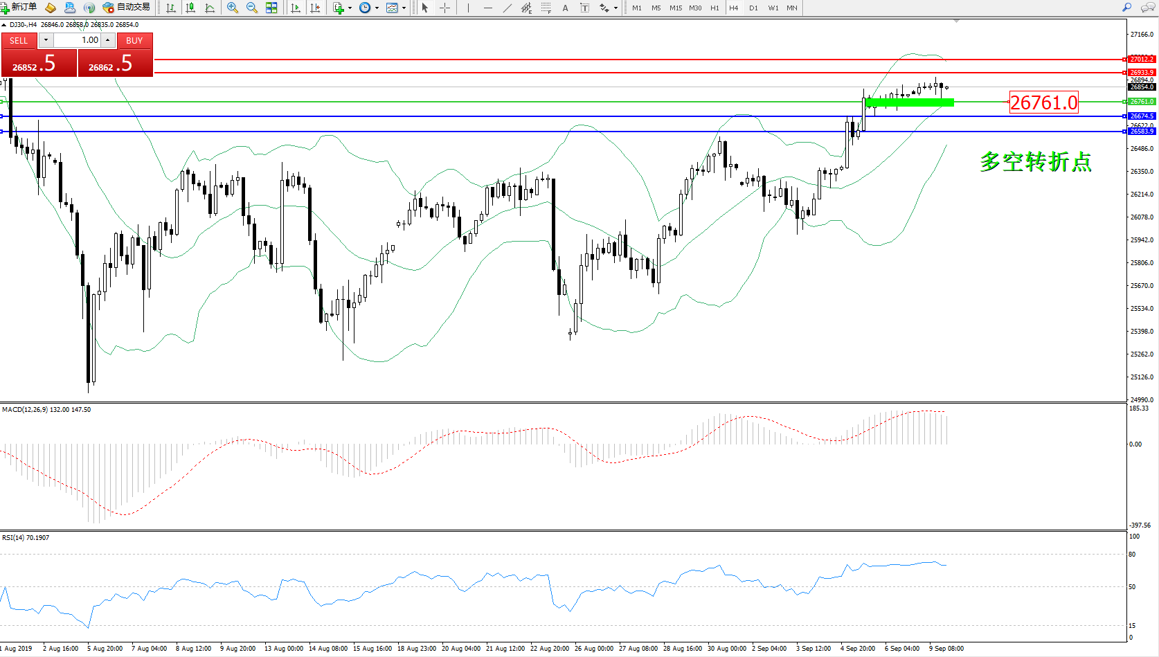 道琼斯指数9月9日(周一)收盘上涨38.00点,涨幅0.14%,报26835.51点。美联储将从现在到明年1月份之间将基准利率整整调低1个百分点,以应对美国经济的急剧放缓。德银此前预期美联储将在9月和12月分别降息25个基点,最新的预测则在10月份和明年1月份分别增加一次降息。制造业信心和资本支出的领先指标发出了可怕信号,而更广泛的劳动力市场和服务业受到溢出效应影响的迹象也在增多。