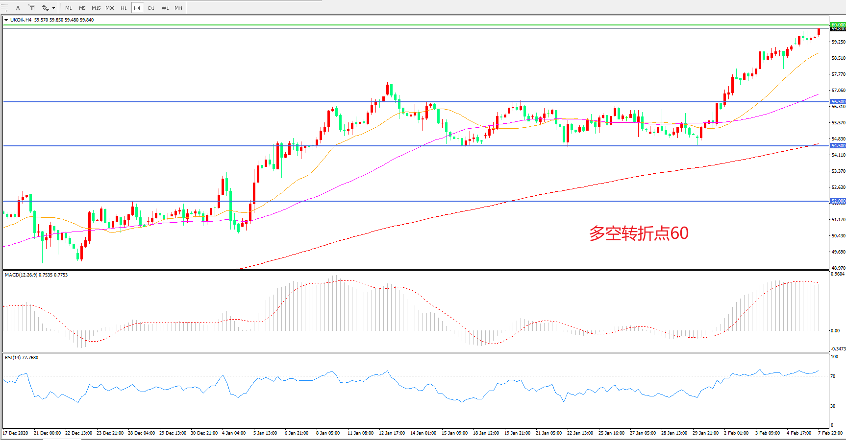 交易策略: 在60.00之上看涨,目标64.00 67.00