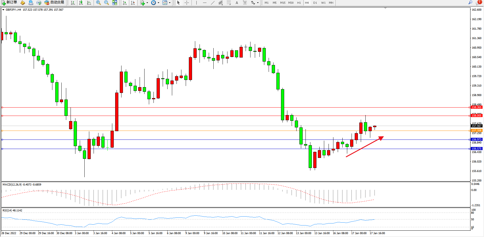 交易策略:157.358上方看涨,目标158.005、158.365
