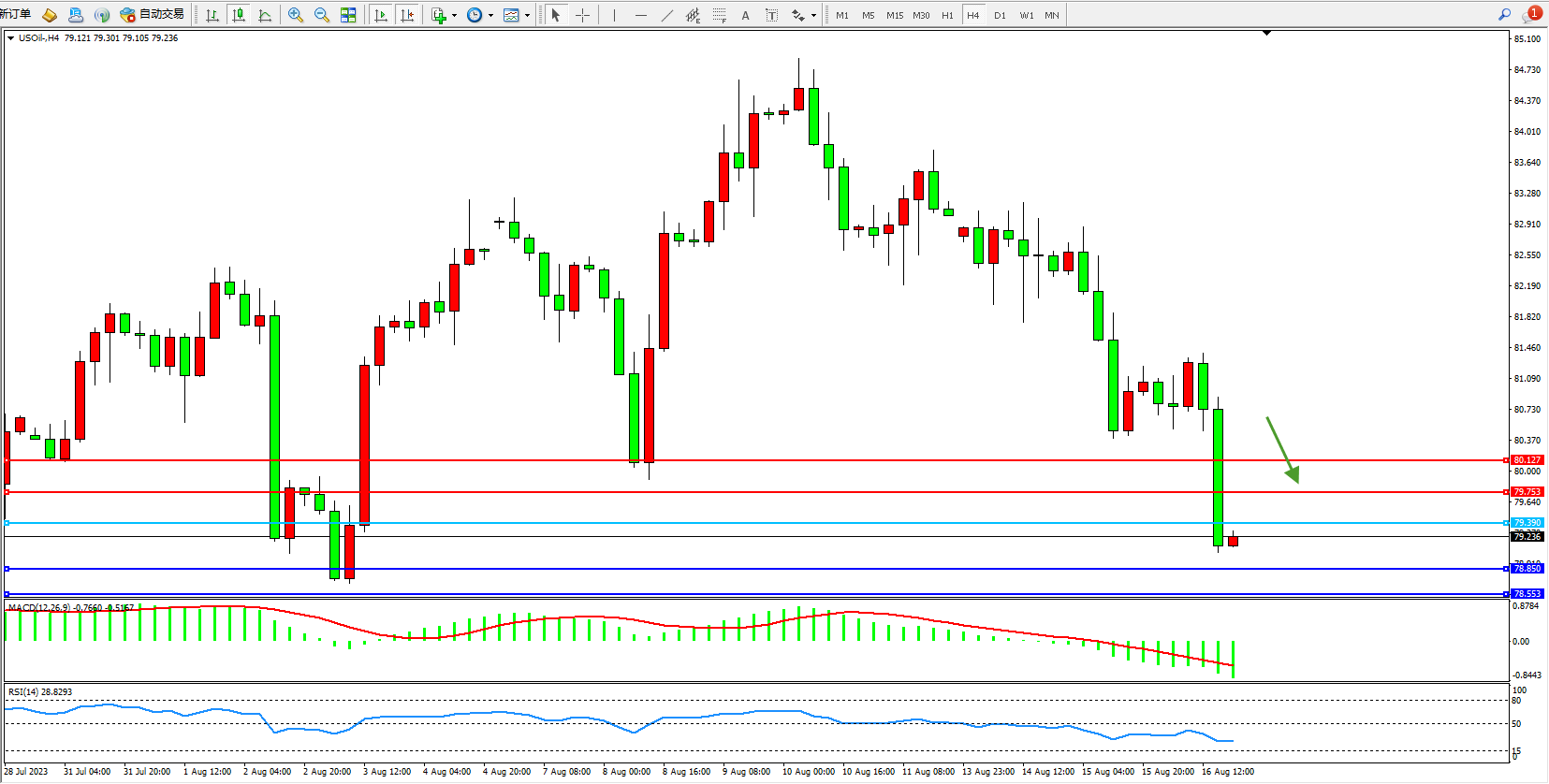 原油USOil——4小时K线图显示: