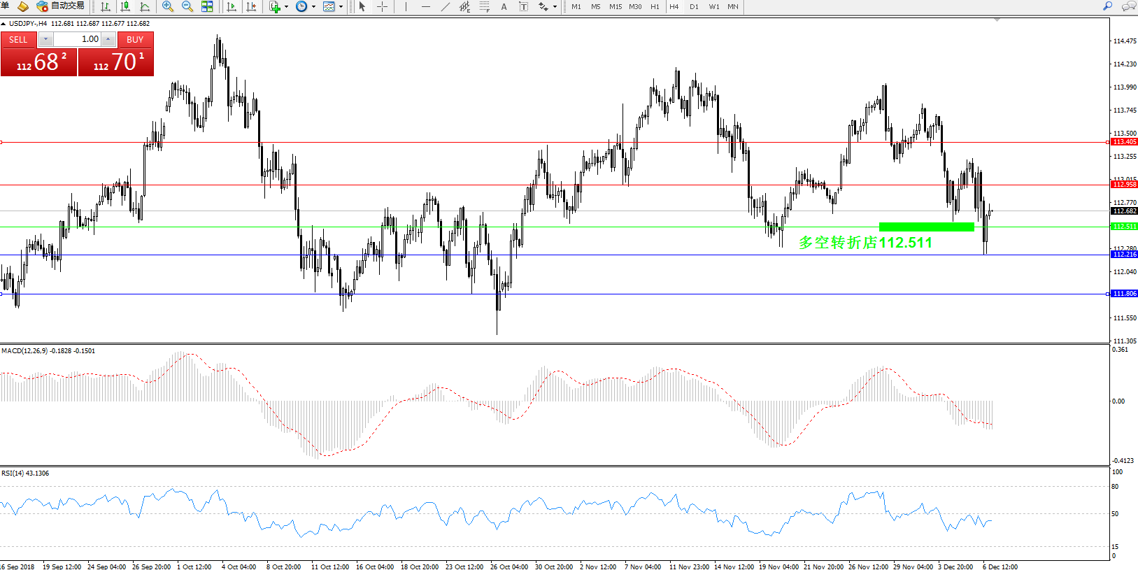 技术点评:高位回撤下行,暂缓获得112.2附近支撑开始拉升,MACD指标空头区域跌势有所减弱,RSI指标底部有拉升迹象;