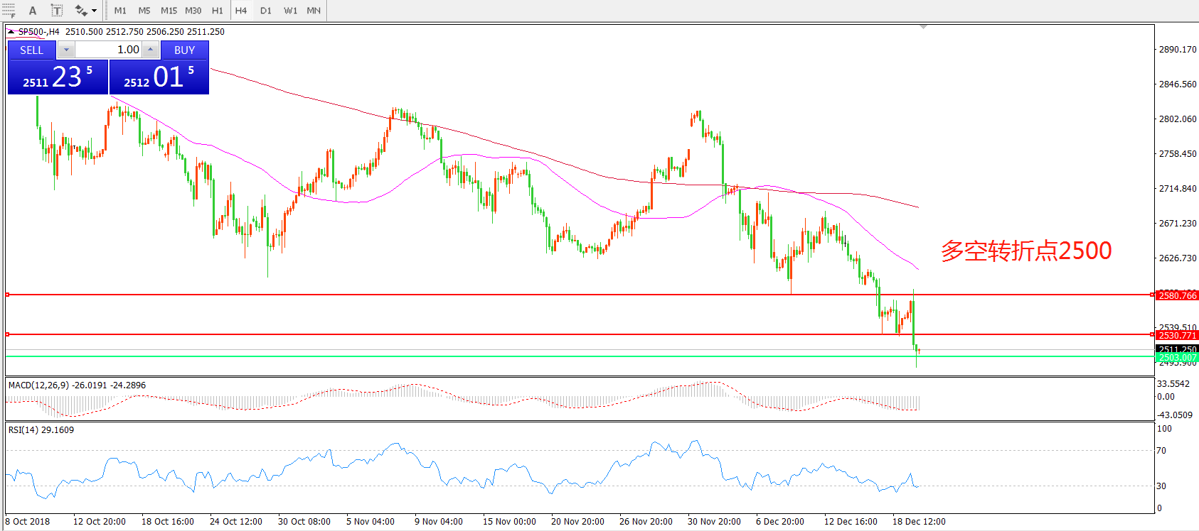 标普500SP500 4小时图