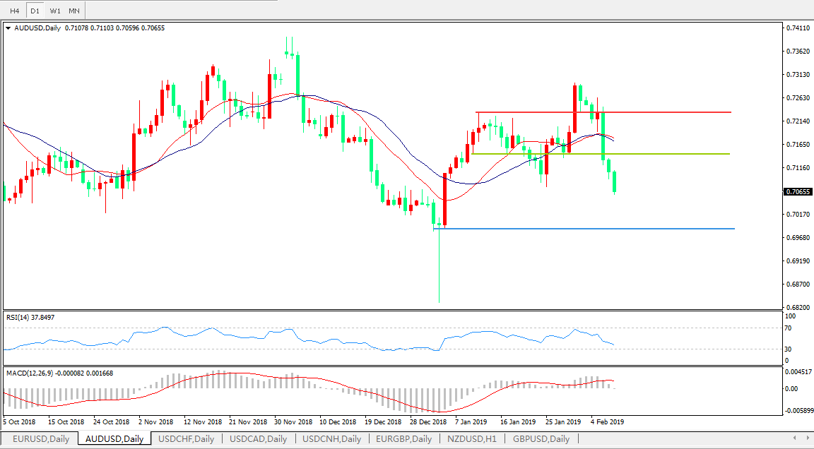 交易策略:在0.7145之下,看跌,目标价位为0.7040,然后为0.6990.