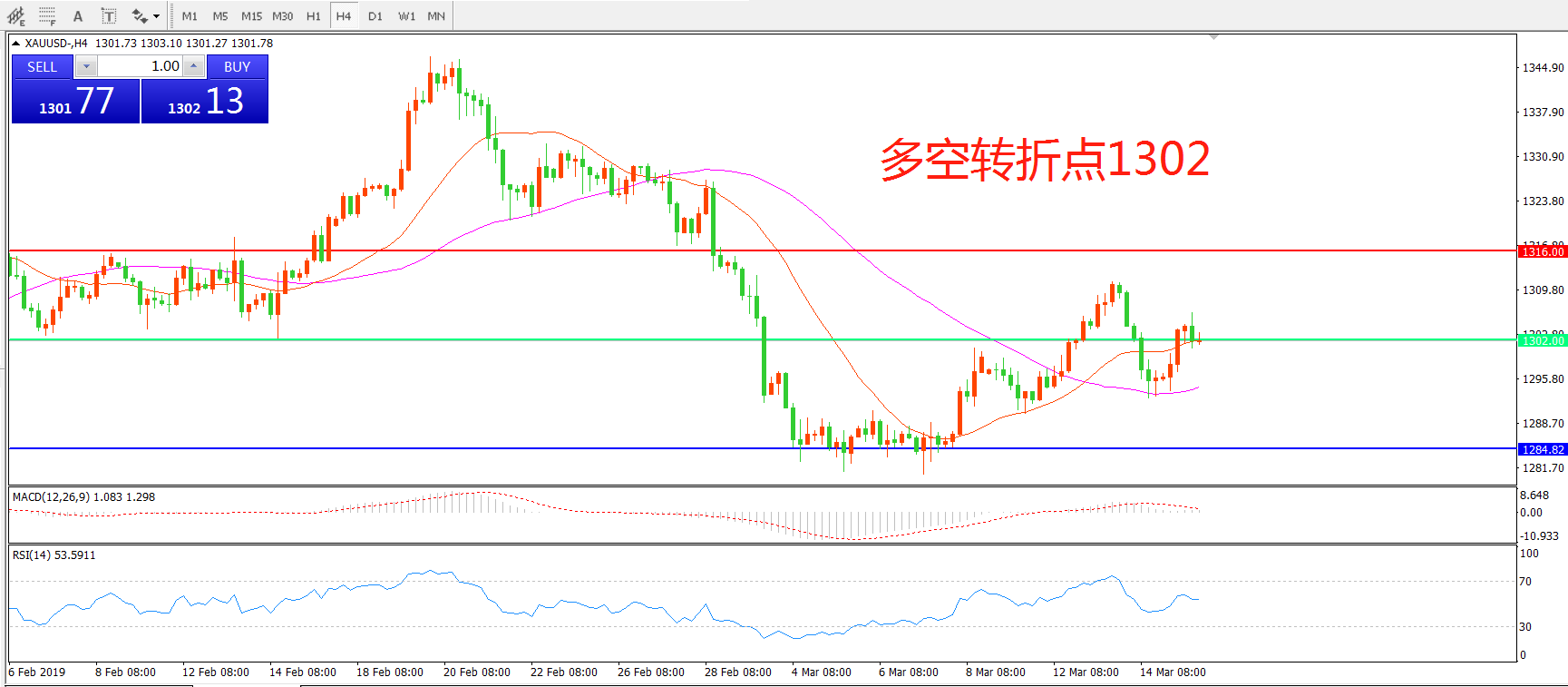 上周,金融市场风波不断,市场主要焦点集中在美国经济数据、脱欧风波以及钯金涨势这三个方面,现货黄金周五(3月15日)温和收涨,重返1300上方。美国数据方面“虎头蛇尾”,尽管周一公布了美国零售销售数据,且表现好于市场预期,但是并没有给美元指数带来反弹的动力。英国脱欧谈判这息则是上周金融市场最大的关注点,欧洲理事会主席图斯克表示,21日召开的欧盟领导人会议将考虑敦促英国脱欧推迟至少一年。