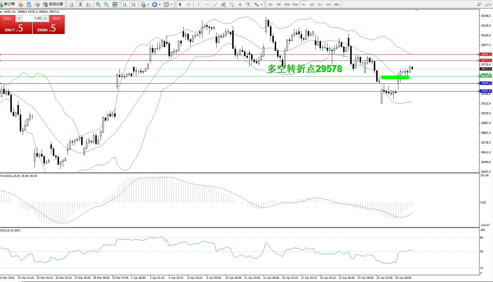 恒指HK50 ——1小时K线图显示: