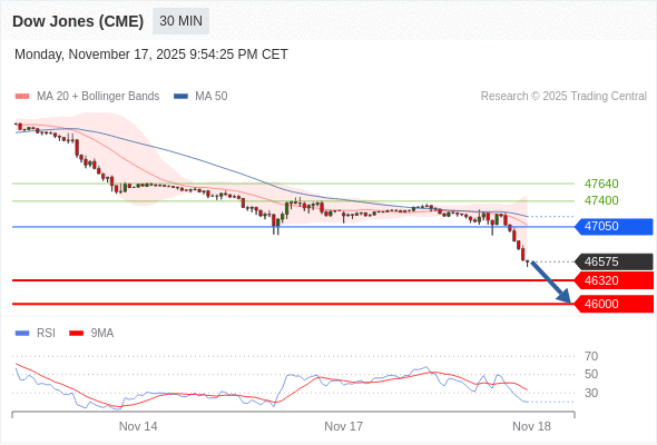 在 47050 之下,看跌,目标价位为 46320 ,然后为 46000 。