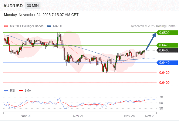 在 0.6440 之上,看涨,目标价位为 0.6475 ,然后为 0.6500 。