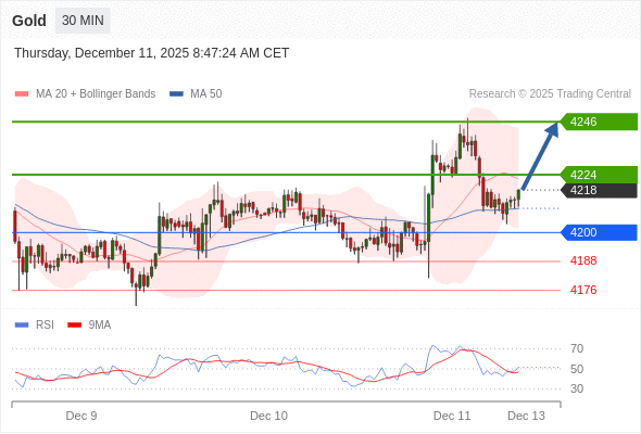 在 4200 之上,看涨,目标价位为 4224 ,然后为 4246 。