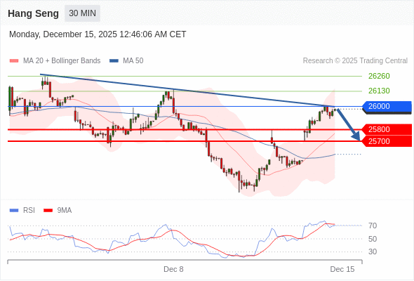 在 26000 之下,看跌,目标价位为 25800 ,然后为 25700 。