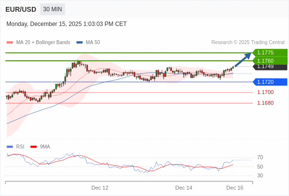 在 1.1720 之上,看涨,目标价位为 1.1760 ,然后为 1.1775 。