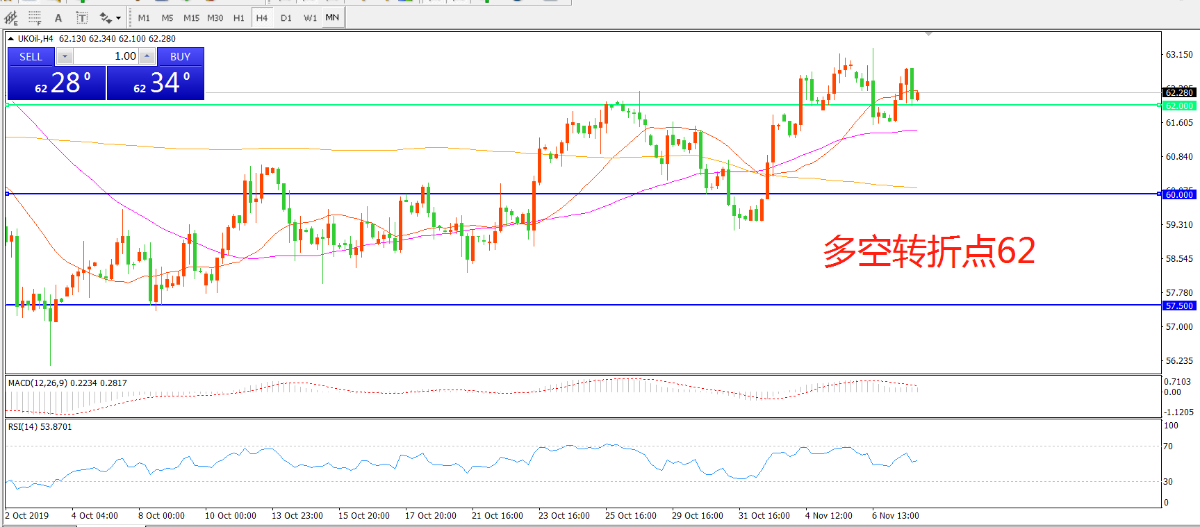 周四(11月7日),中国商务部表示过去两周中美双方牵头人就妥善解决各自核心关切,进行了认真、建设性的讨论,同意随协议进展,分阶段取消加征关税。这一消息令一度消沉的市场风险偏好情绪重新得到提振,原油未来需求前景也重新被看高,布伦特原油周四收涨0.9%,报62.29美元/桶。