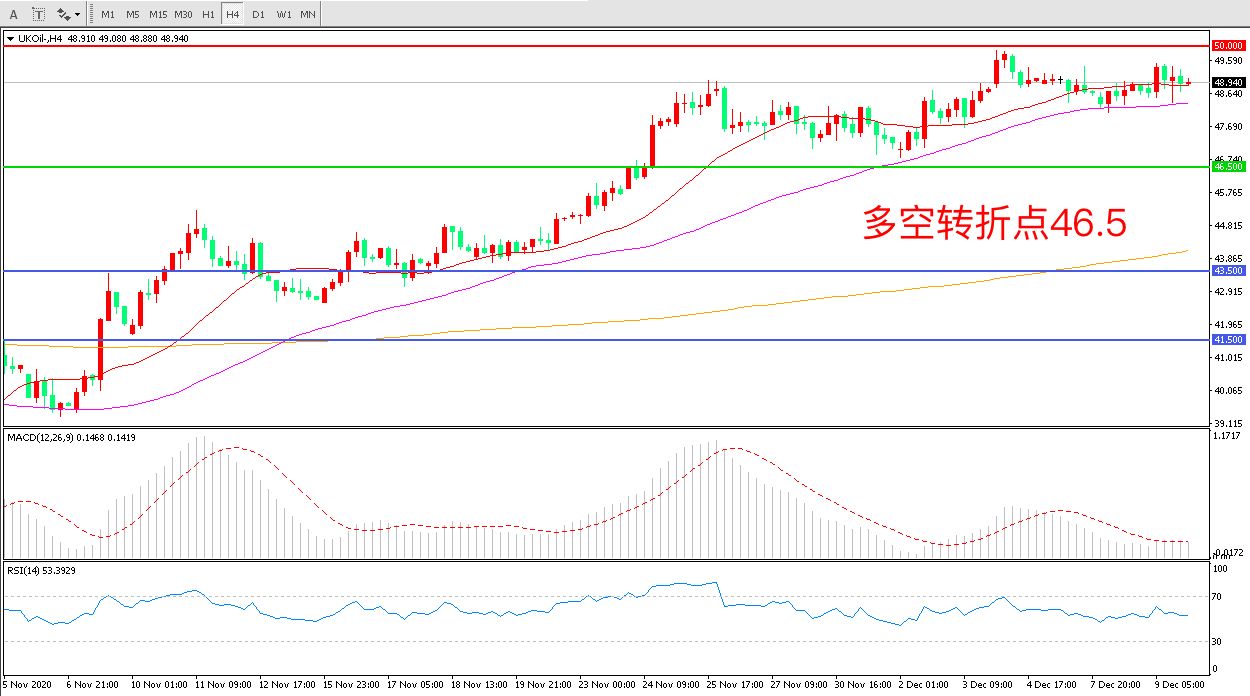 交易策略: 在46.50之上看涨,目标50.00 53.00