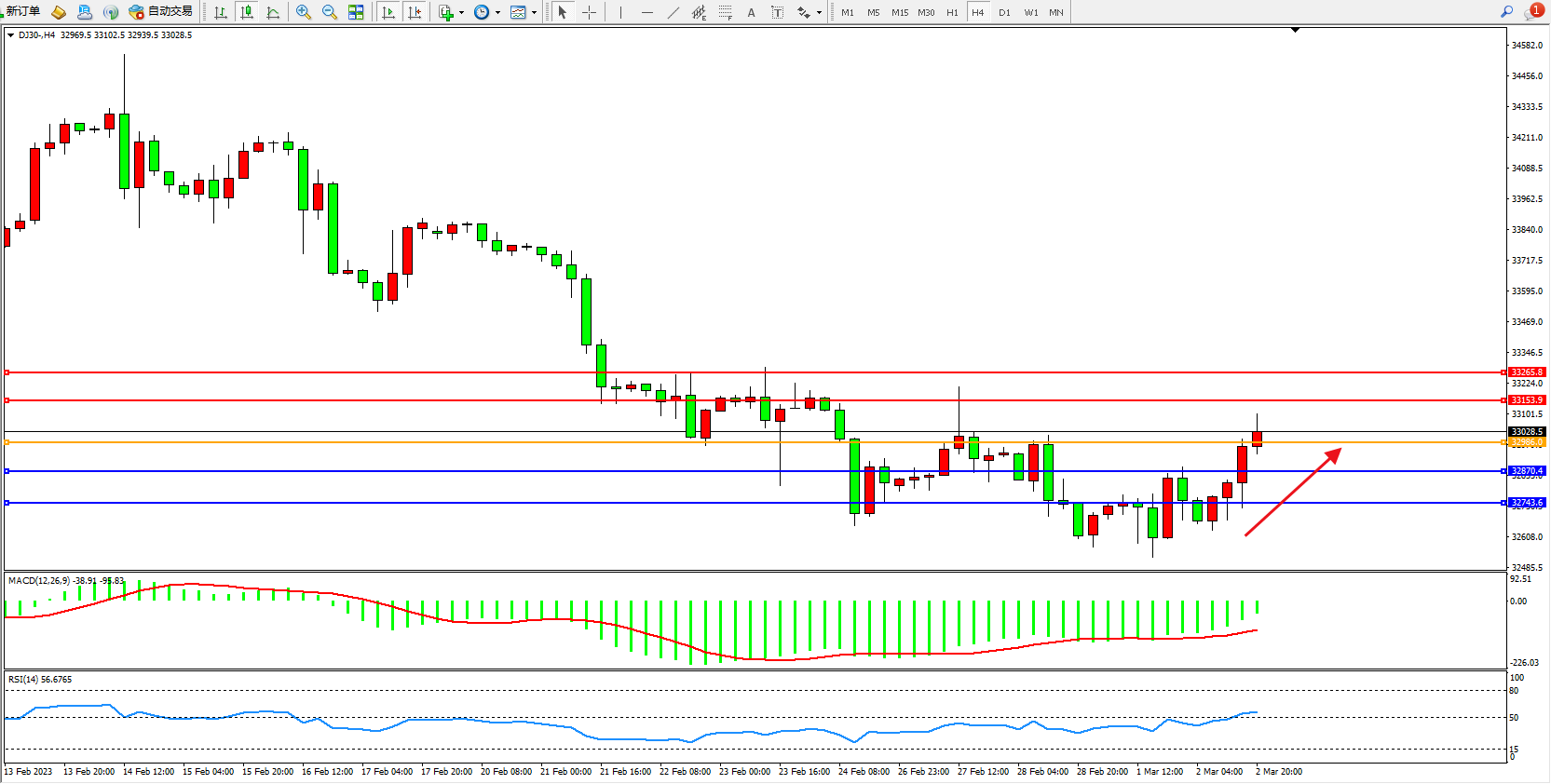 道琼斯指数3月2日(周四)收盘上涨343.28点,涨幅1.05%,报33005.12点;对于高通胀和持续火爆的就业市场是否需要美联储更激进的加息,或者只是耐心地在更长时间内维持现行加息节奏,美联储官员对此存在分歧。